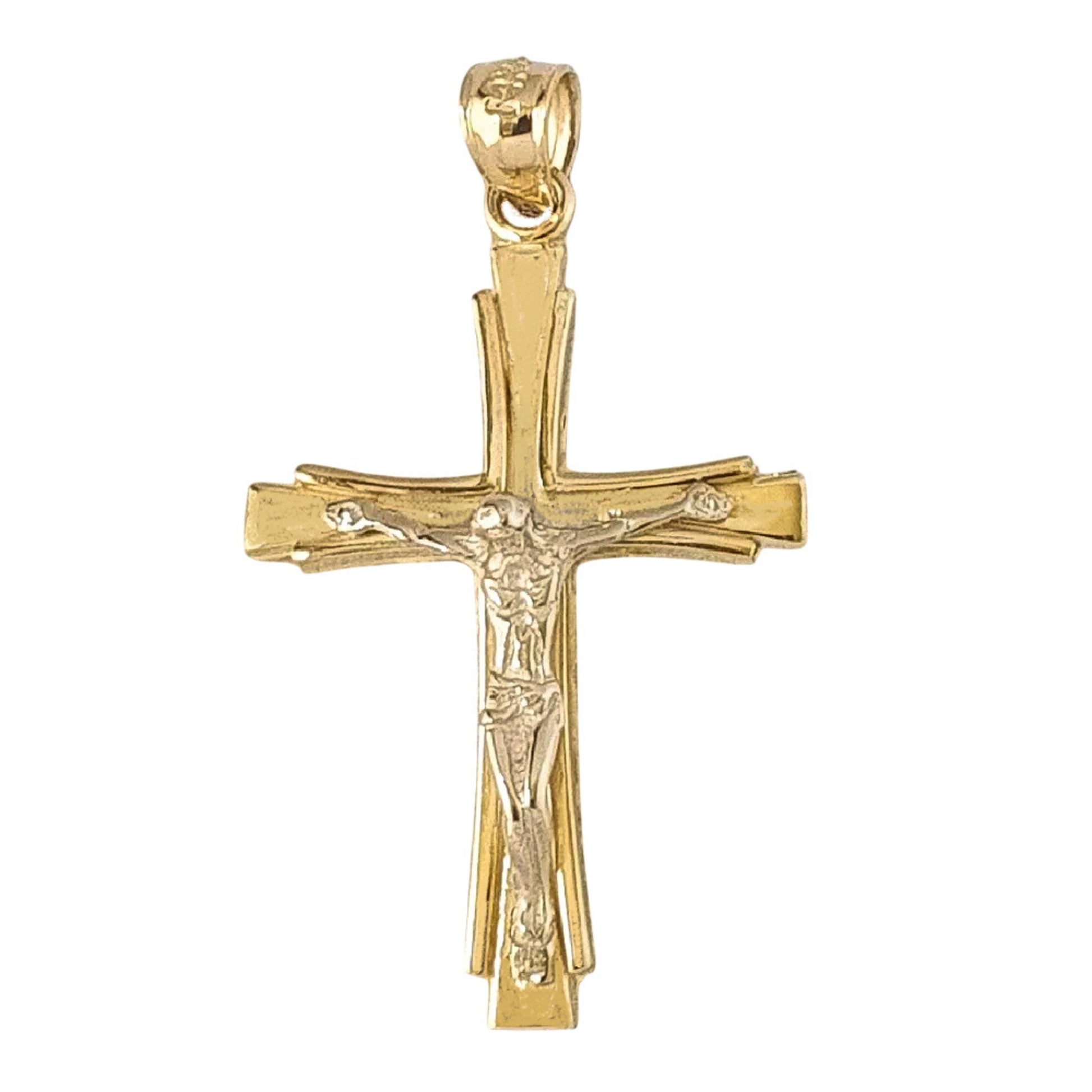 14k Yellow Gold and White Gold Crucifix Cross Two Tone Pendant