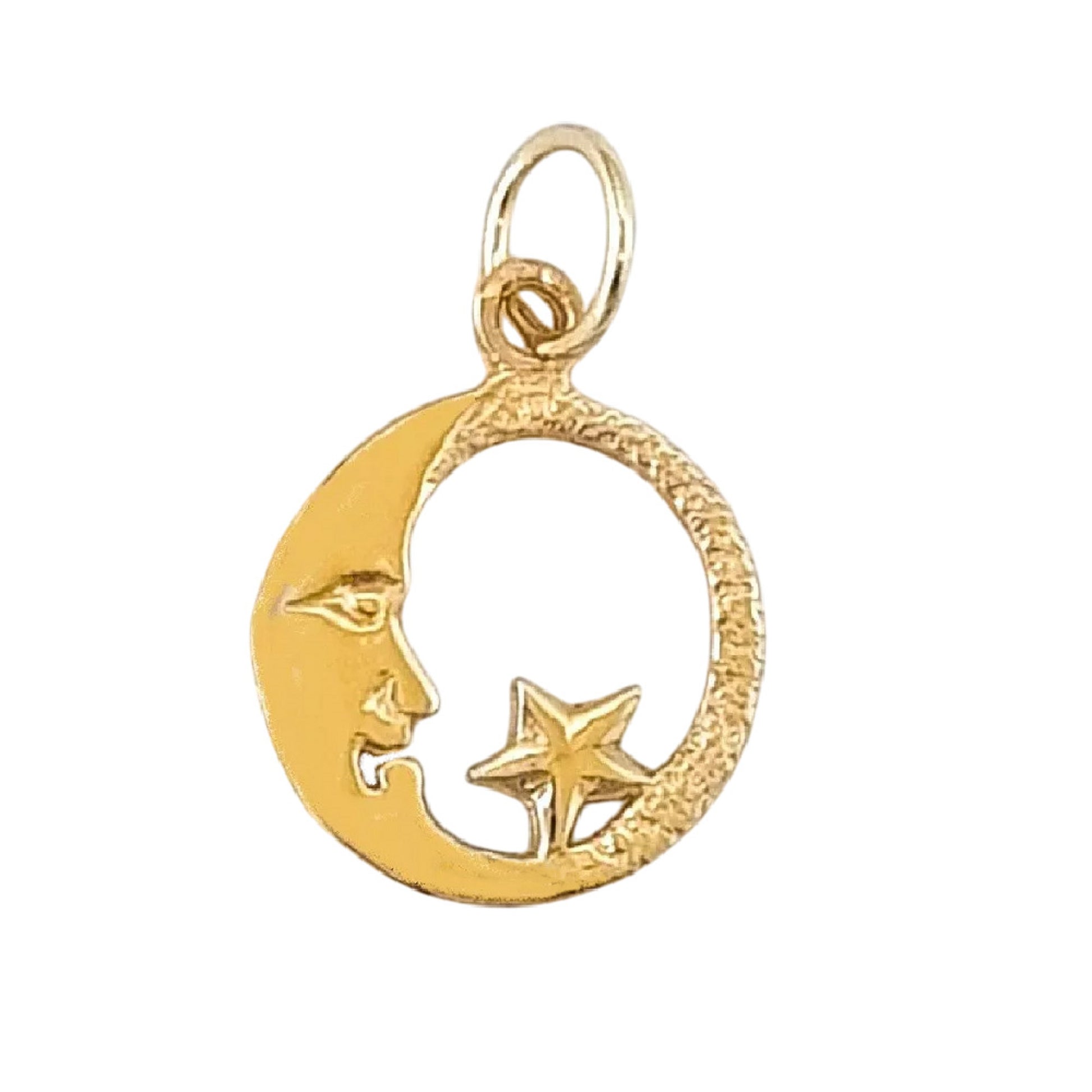 14K Yellow Gold Moon with Star Pendant Charm.