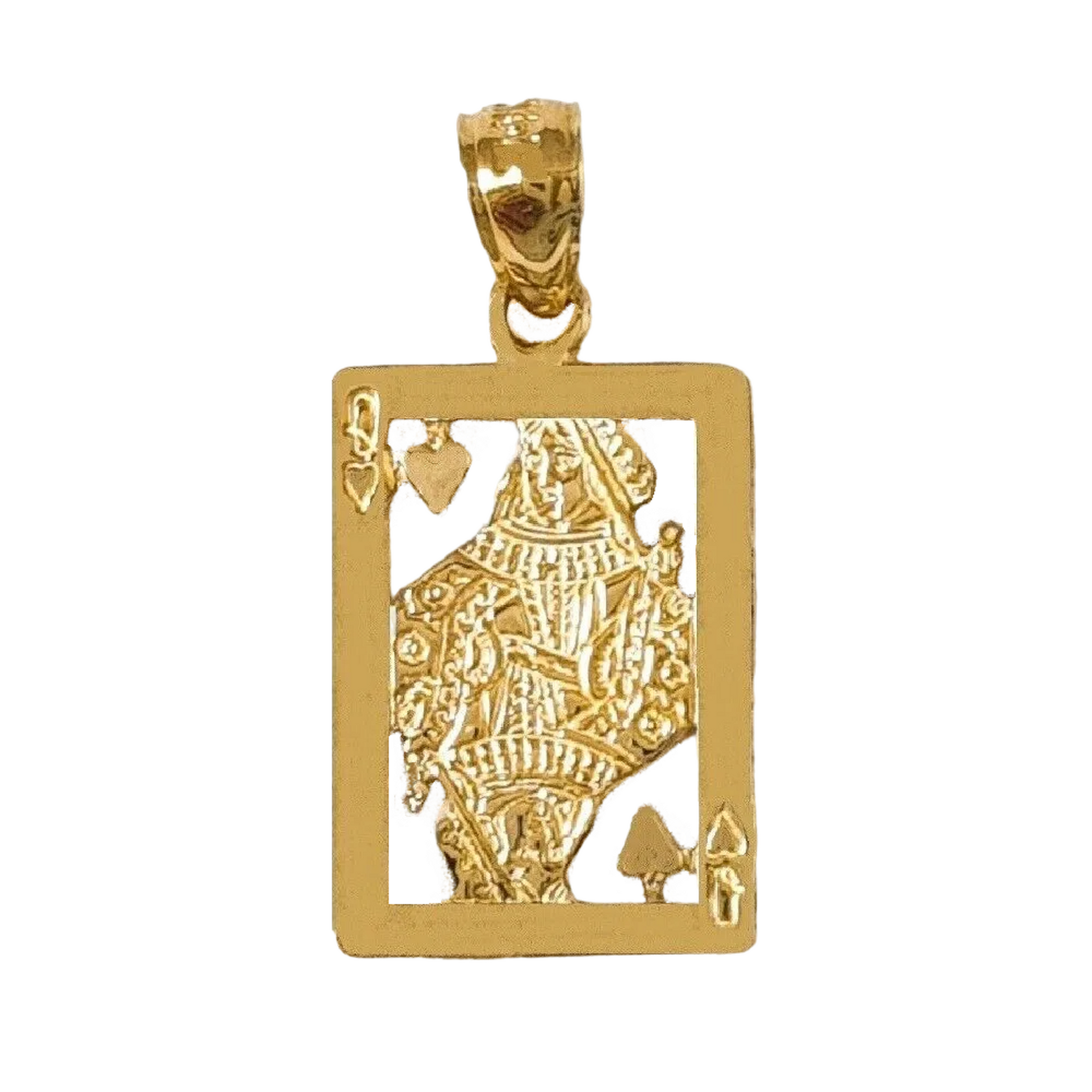 14K Yellow Gold Queen of Hearts Playing Card Pendant.