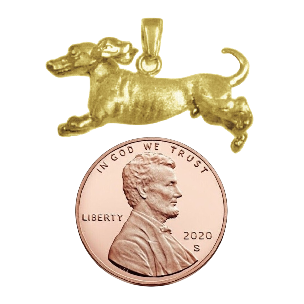 925 Sterling Silver Yellow Gold Plated Necklace w/ Dachshund Dog 3D Solid Pendant
